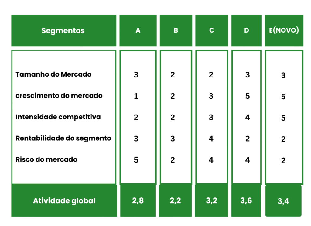 É preciso fazer uma análise de portfólio dos principais segmentos de negócios e a melhor ferramenta para isso é a matriz de atratividade/posicionamento.