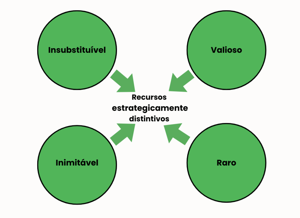 Barney defende que uma empresa deve possuir recursos dentro desses quatro atributos para construir vantagem competitiva sustentável. A ausência de qualquer tributo torna o recurso insustentável.