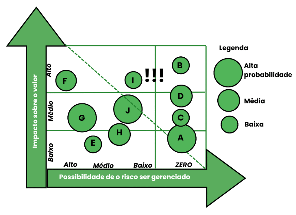 • Médio – este risco pode ser gerenciado: por exemplo, a resposta do cliente ao lançamento de um novo produto (que pode ser reformulado, se necessário).